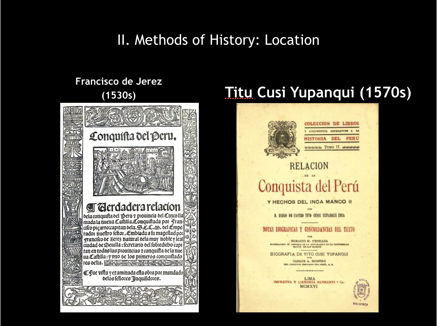 On the other hand, Titu Cusi Yupanqui’s story, An Inca Account of the Conquest of Peru, was not uncovered until the 1570s, which is problematic, for Jerez’s story had enough time to reach the public and spread this unrealistic sense of “truth”. Yupanqui’s story comes from a different angle, giving a more graphic and hard hitting approach to the history. The account addresses the struggles that multiple generations in his family underwent due to the conquest of the Inca Empire and how detrimental had been.